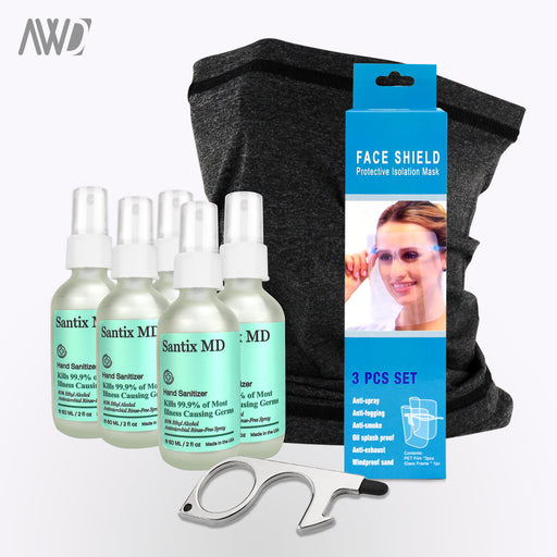 5 Pocket size 2 oz Sanitizers 1 Protective keychain 1 Copper infused Neck Gaiter 3 Pack kit Eyeglass Face Shield FACE SHIELD - Protective Eyeg...